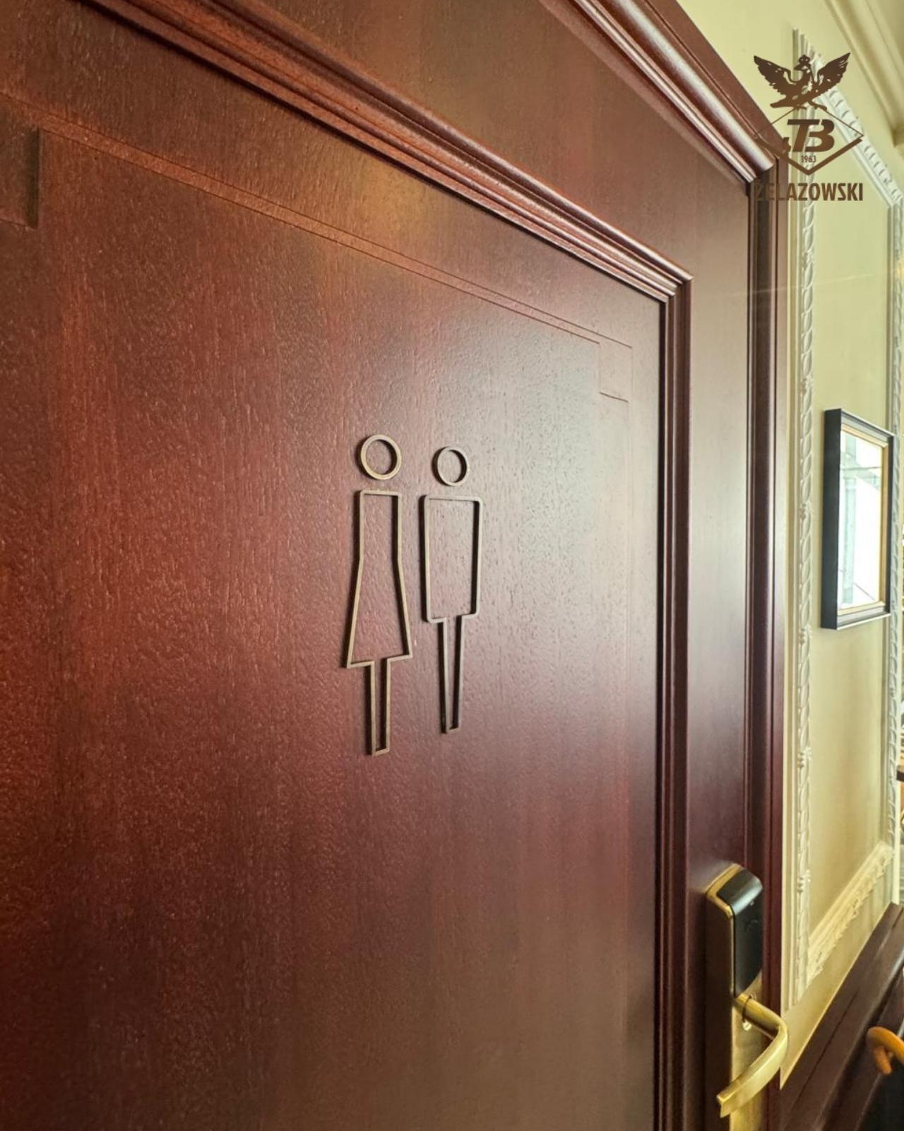 Minimalistyczne oznaczenia toalety wykonane z mosiądzu dla hotelu Bristol.