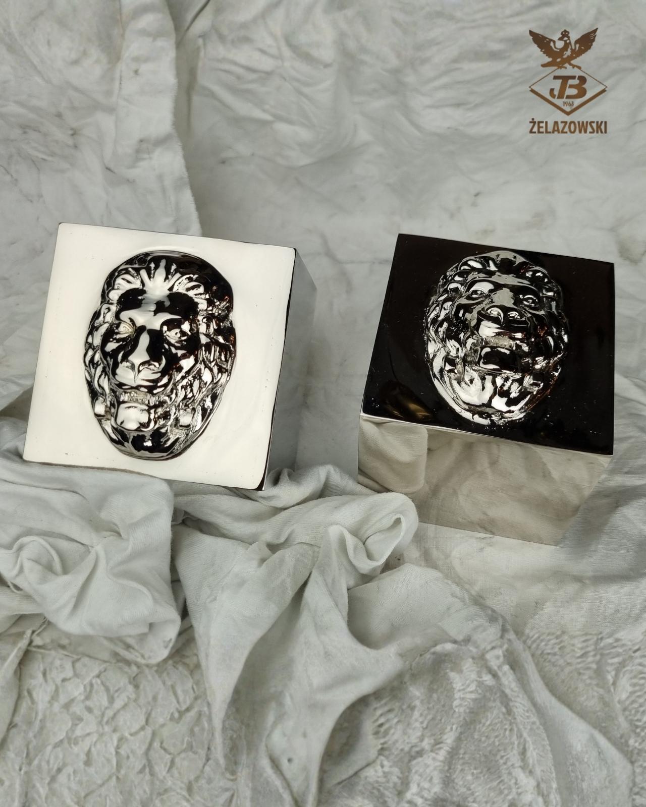 Ozdobne kostki z lwami wykonane z mosiądzu niklowanego, realizacja do Dubaju.