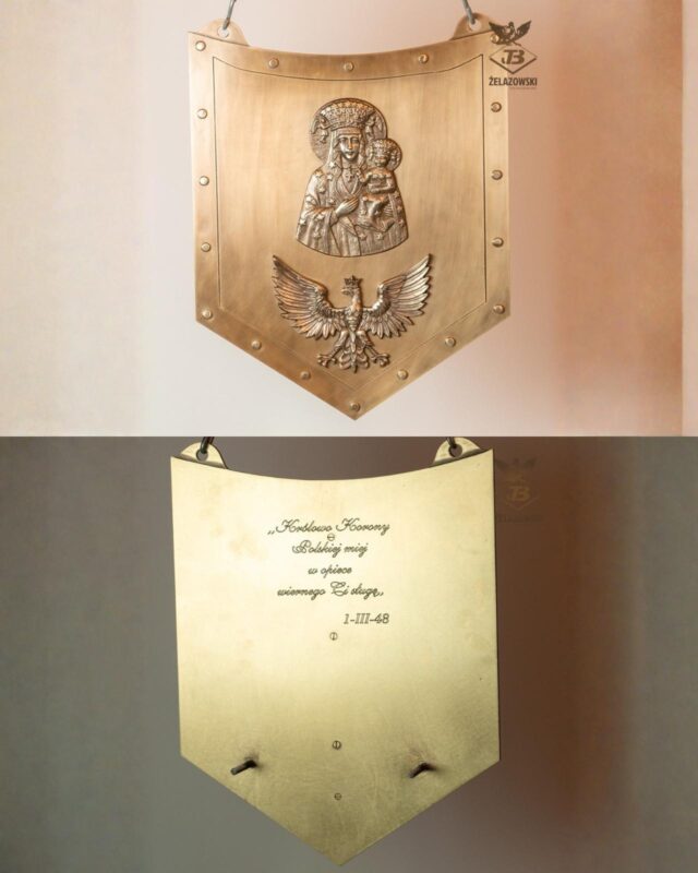 Tarcza z mosiądzu wykonana od podstaw w naszej odlewni, przeznaczona do montażu na pomniku.