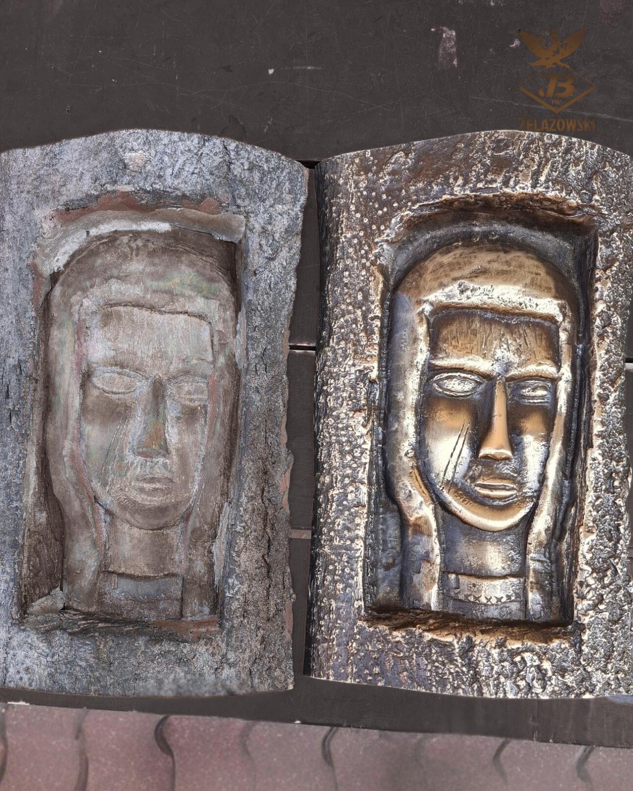 Replika zabytkowego reliefu w mosiądzu, wykonana w dużej skali z zachowaniem detalu.