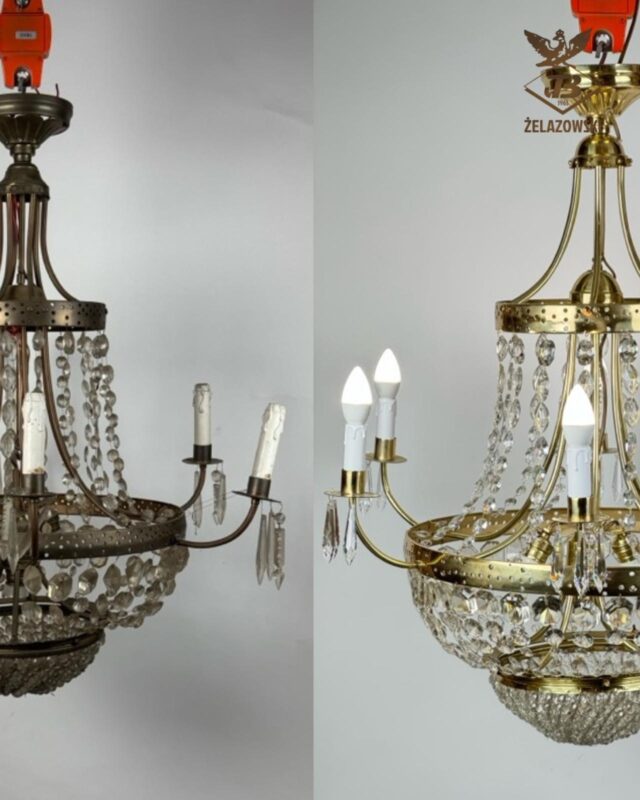 Renowacja żyrandola przed i po